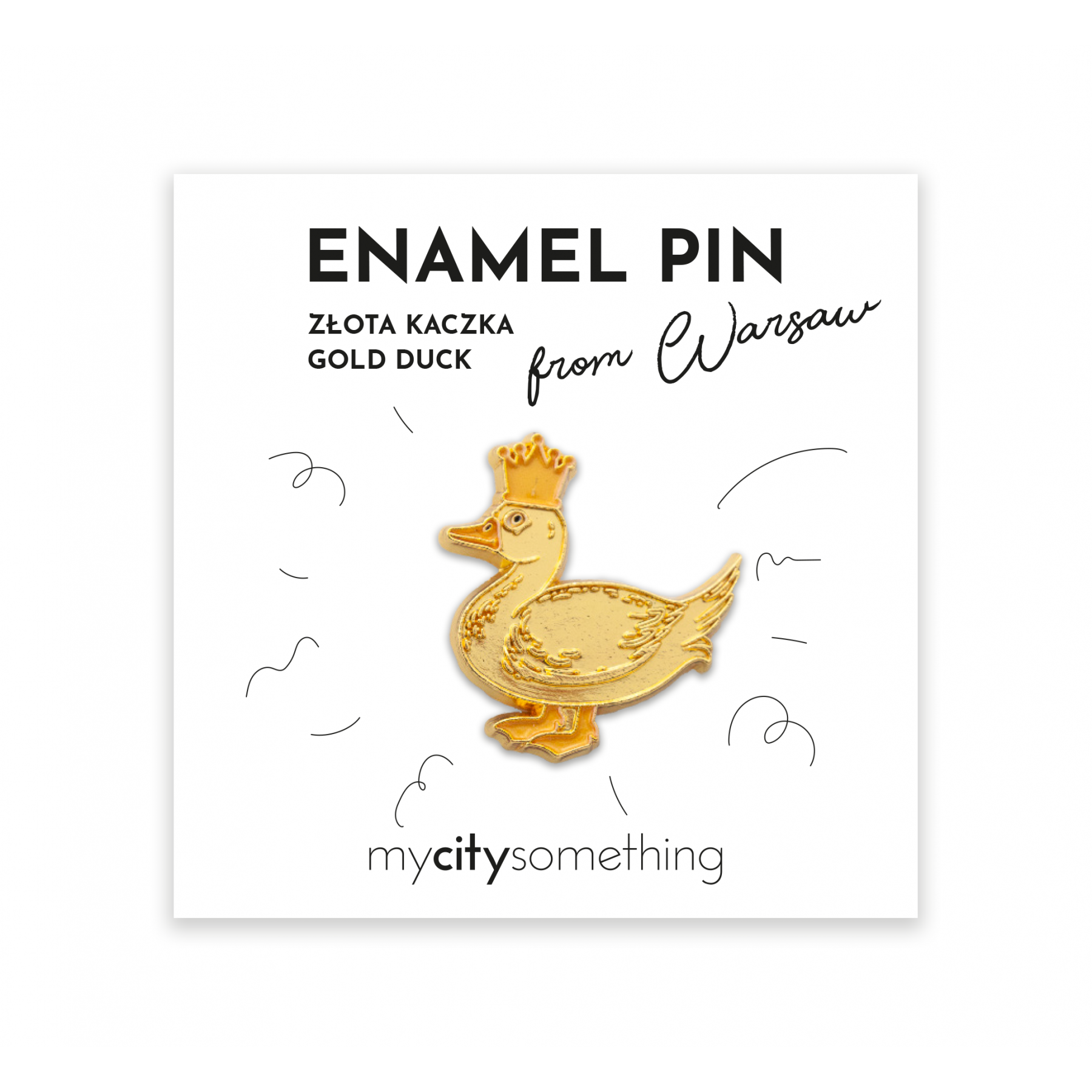 Ten pin na pewno zadowoli każdego, kto kocha stolicę! Złota Kaczka to jedna z najsłynniejszych warszawskich legend, symbolizująca tajemnicę i magię miasta. Opowieść mówi o bogactwie i chciwości ludzi, którzy marzą o skarbach, ale muszą wykazać się mądrością, aby je zdobyć. Legenda głosi, że mieszka w podziemiach starych kamienic i strzeże ukrytego skarbu, pojawiając się tylko przed tymi, którzy są godni. Złota Kaczka stała się symbolem legend, fantazji i bogatej kultury Warszawy. Złota Kaczka w postaci emaliowanej przypinki z motylkowym zapięciem. Idealne do przypięcia na piórnik, ulubioną płócienną torbę, czapkę, kołnierzyk itd. Świetnie nadaje się na mini upominek!