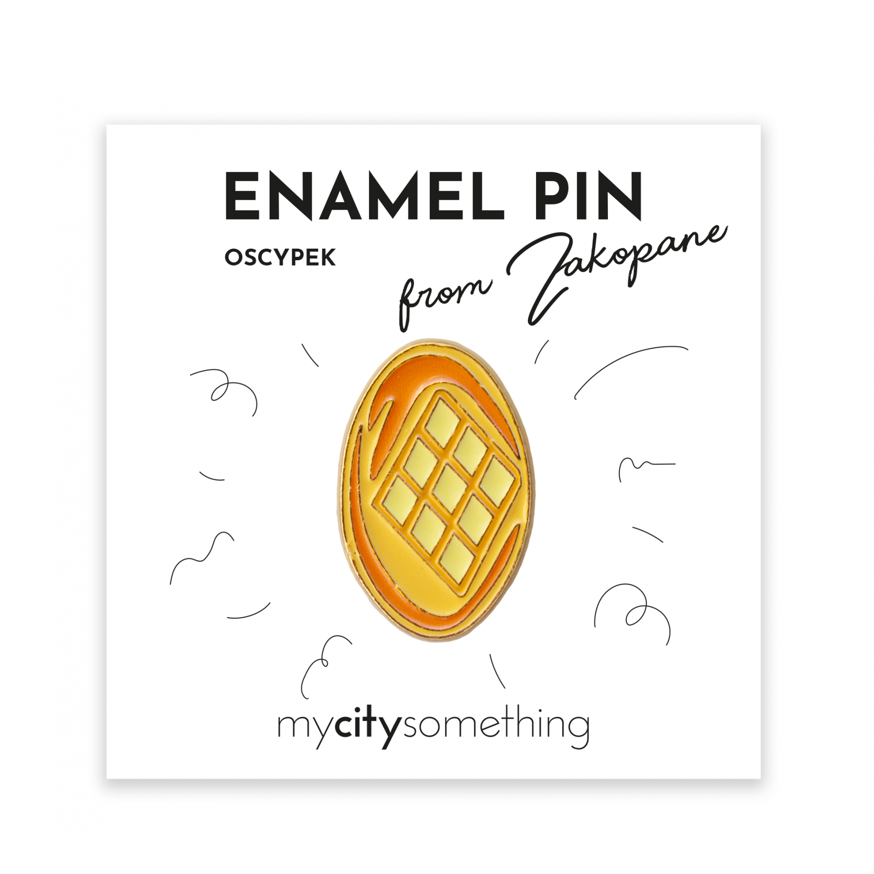 Oscypek – tradycyjny, wędzony ser owczy z Podhala, wyrabiany ręcznie według wielowiekowej receptury. Posiada charakterystyczny kształt wrzeciona i niepowtarzalny, lekko słony smak. Idealne do przypięcia na piórnik, ulubioną płócienną torbę, czapkę, kołnierzyk itd. Świetnie nadaje się na mini upominek!